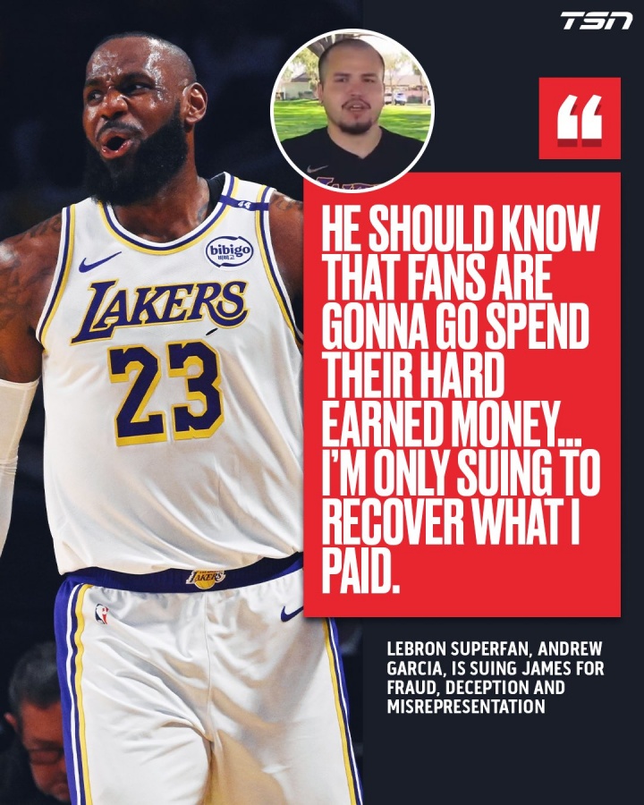 在這個十月的日子裏,洛杉磯湖人隊的忠實支持者安德魯·加西亞選擇走上法律的道路,起訴了那位廣受矚目的籃球巨星勒布朗·詹姆斯。根據美媒TMZ的報道,這位29歲的終身球迷聲稱,他因詹姆斯在“決定二”中的暗示而遭受了損失,具體的金額高達865.66美元。加西亞的說法是,詹姆斯曾在社交媒體上傳遞出他即將宣布退役的信號,這讓他付出了額外的代價。