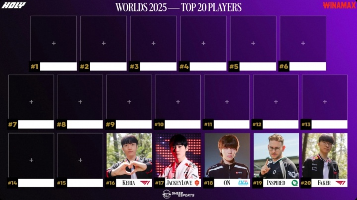 10月11日,國外電子競技媒體Sheep Esports為我們揭開了2025年全球總決賽Top 20選手榜單的序幕。在評審團中,包括了米勒、管澤元、Ghost、Teddy等頂尖從業者,共同為這份榜單貢獻了自己的見解。今日揭曉的是從第16至第20位的選手,他們將代表電競界的最高水平迎戰。