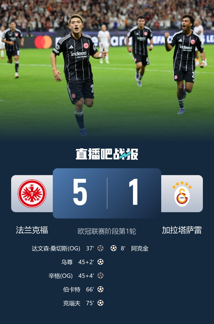 北京時間9月19日淩晨3點,2025-26賽季歐冠聯賽小組賽首輪在德意誌銀行公園球場展開激烈對抗,法蘭克福在主場以5-1逆轉戰勝加拉塔薩雷,後者遭遇賽季首敗。比賽中,阿克金為加拉塔薩雷首開紀錄,法蘭克福的烏尊和克瑙夫等人則展現了強大的反擊能力,幫助球隊成功扭轉局勢。