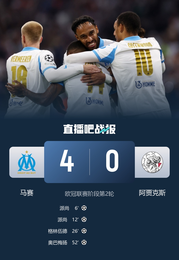 經過90分鐘的較量,馬賽以4-0的輝煌戰績戰勝了阿賈克斯,成功取得他們在本屆歐冠的首場勝利。這場比賽不僅讓球迷們看到了馬賽的強大攻擊力,也讓人期待他們在後續比賽中的表現。