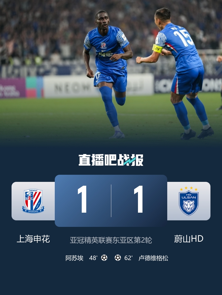 在10月1日進行的亞冠精英聯賽東亞區第二輪較量中,上海申花與蔚山HD在上海體育場展開激烈對抗,最終雙方以1-1握手言和。這場比賽的結果使得申花在本屆亞冠的兩輪比賽中未能取得勝利,目前積1分排名第9,而蔚山HD則積4分位居第4。