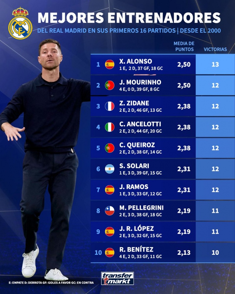 在足球的世界中,勝利總是值得慶祝的。近日,德國轉會市場整理出了一份有關皇家馬德裏主帥在2000年以來前16場比賽勝利的統計信息,令人驚喜的是,阿隆索以13場勝利高居榜首。這份榜單不僅回顧了皇馬的輝煌瞬間,也展現了幾位教練在短時間內所取得的卓越成就。