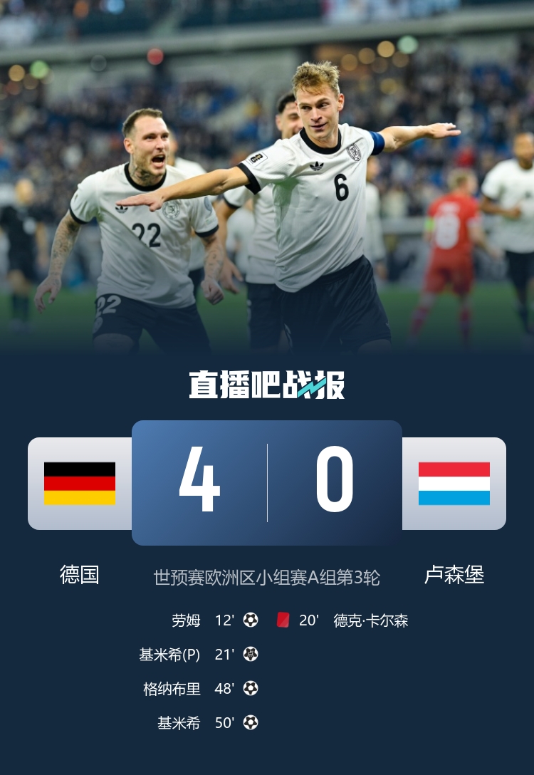 最終,德國隊在這場比賽中以4-0的輝煌戰績戰勝了十人盧森堡,積累了6分,排名小組首位,展現了他們強大的實力與團隊協作精神。
