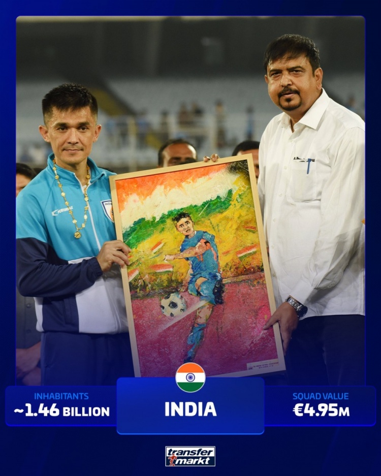 首先是印度,這個擁有14.6億人口的國家,盡管擁有強大的足球潛力,然而國家隊目前的身價僅為495萬歐元。接下來的印尼,其人口達到2.85億,國家隊的身價為2950萬歐元,展示了一定的足球基礎,但仍未能如願進入世界杯。
