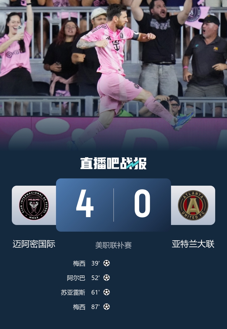 最終,經過90分鐘激烈的比賽,邁阿密國際以4-0的比分戰勝亞特蘭大聯,距離積分榜的首名僅有4分之差。這場勝利不僅提升了邁阿密在積分榜上的位置,也展現了球隊的強大實力。