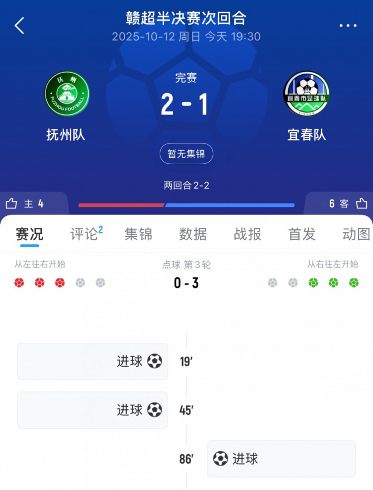 在2025年贛超半決賽的次回合較量中,宜春隊憑借點球大戰順利淘汰撫州隊,與贛州隊會師總決賽。首回合的失利令撫州隊在主場展開強攻,憑借主場之利試圖逆轉局勢。