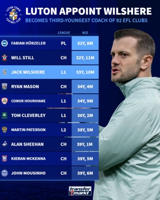 第三名是我們的主角威爾希爾,作為英甲盧頓的新帥,他以33歲10個月的年齡屈居榜單之上。這位曾經的球場明星,如今化身為帶領球隊拼搏的教練,無疑讓人期待他的未來表現。接下來的則是瑞恩-梅森,他是英冠西布朗的主教練,年紀稍高,34歲4個月。